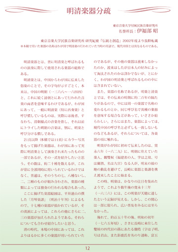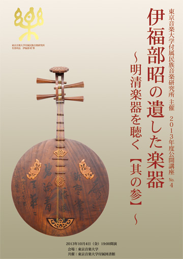 日本を代表する作曲家であり、東京音楽大学学長、同大学民族音楽研究所所長を長く務め、2006年に亡くなった伊福部昭先生の遺された、貴重な明清楽器の公開及び明清楽器を聴く