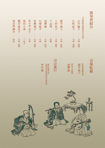 富山県魚津市出身。尺八を邦山会で都山流を学び、二胡・胡弓・地唄三弦を坂田古典音楽研究所で学ぶ。月琴奏法は長谷川敏幸氏より学ぶ。明清楽楽器に魅了され長谷川氏と共に明清楽資料を精力的に収集。2004年には琉球御座楽復元演奏研究会の依頼により、長線(阮咸)・月琴・四線・胡琴を製作。 伊福部昭先生が遺された明清楽楽器と御座楽楽器の共通性を見いだし、昨年の公開講座「伊福部昭の遺した楽器~明清楽楽器を聴く~」で講師を務める。