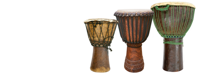 西アフリカの有名な技巧的片面太鼓「ジェンベ」は、西アジア太鼓「ダラブカ」の項で述べた様に、古代ペルシア~西アジア~北アフリカ経由で西アフリカにもたらされた「花杯型片面太鼓」が原点である。しかし、西アフリカの人々は、西アジア式の膝上に水平に置くのではなく、古代からのアフリカ太鼓の習慣通りに足の間に縦に置いて叩いた。西アジア太鼓の場合、両手の左右の動きに意図的な差異を持たせたのであるが、似「ジェンベ」の場合、左右がほぼ平等な役割を担う結果、アフリカ太鼓奏法やパターンの表現、野外に適応出来る音量と、西アジア太鼓からの脱却を果たしたとも言える。その一方で「花杯型」の恩恵を最大限に生かし。従来のアフリカ太鼓では得られなかった高音と低音の劇的なメリハリも得たのである。