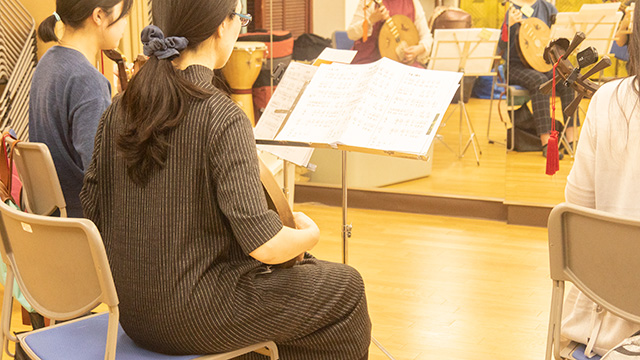 江戸時代中頃から明治にかけて日本で大流行した音楽が「明清楽」。合奏の代表的楽器である「月琴」は、現代の人気楽器ギターと同様にフレットが付いています。調弦すれば簡単に弾くことができ、音も小さく、一般住宅で練習できます。