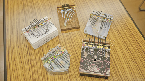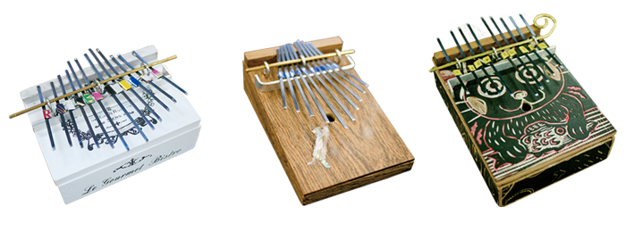 並んだ細い斜盤を親指で弾いて鳴らします。ちょうどオルゴールの手動版といった感じでしょうか。楽器は作る人の個性により大きさも形も「板」の数もまちまち。音階も民族によって、製作者によってさまざまです。