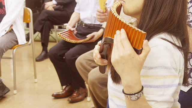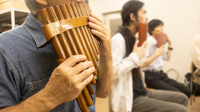 竹や葦などのパイプを音階順に並べて吹くシンプルな構造ですが、素朴で美しい音色を奏でることができます。初めてパンフルートを学ばれる方向けに、歴史を学び、基本的な奏法の習得を目指します。